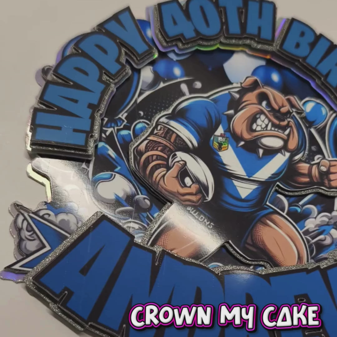 Celebrate your team spirit with this NRL Bulldogs Cake Topper! Each topper is handmade, personalised, and perfect for Canterbury-Bankstown Bulldogs fans who want their cake to show true team pride. Ideal for birthdays, NRL finals parties, or themed events.