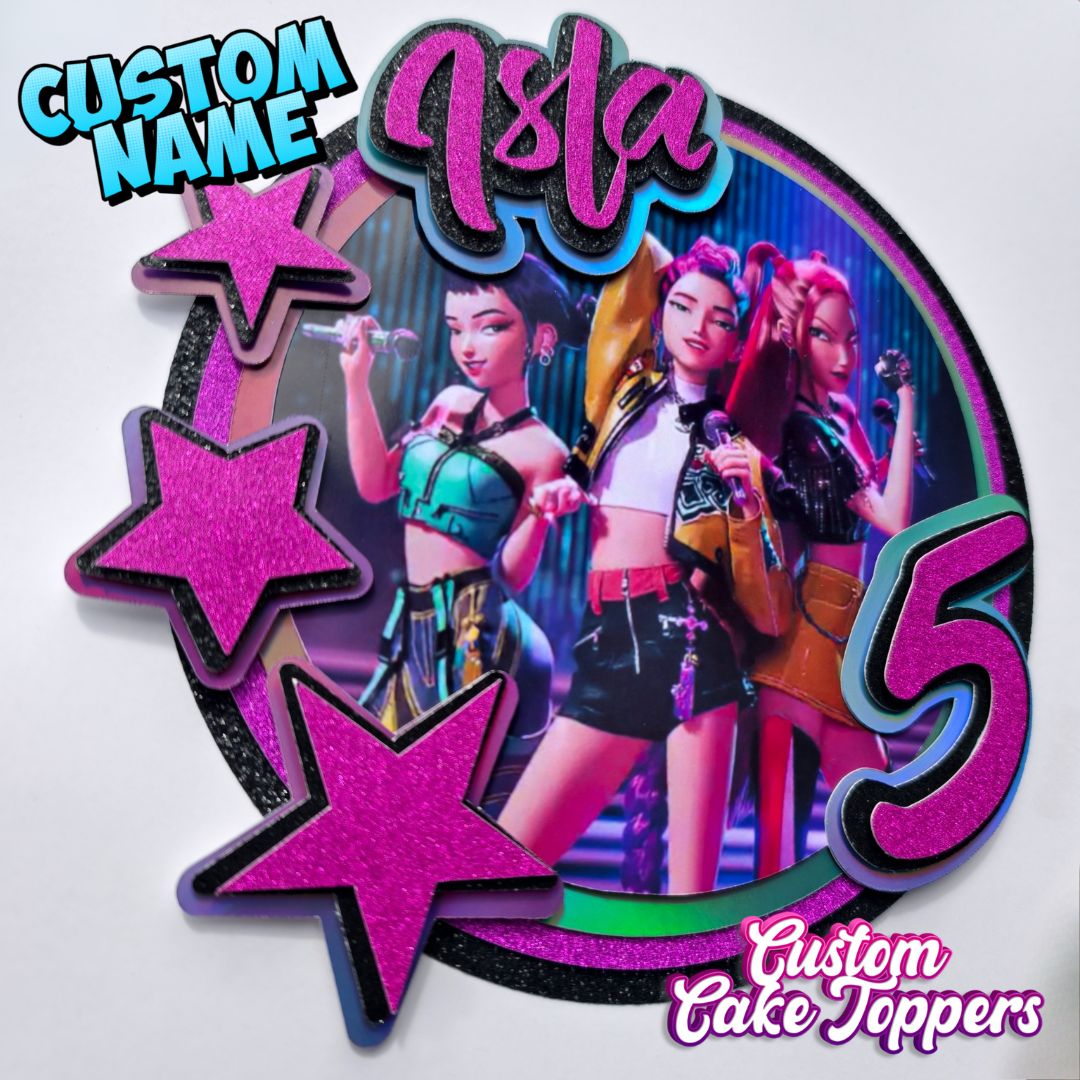 Bring your favourite K-Pop vibes to the party with this K Pop Demon Hunters Cake Topper! Perfect for birthdays, fan events or themed celebrations — every topper is personalised and designed to stand out.