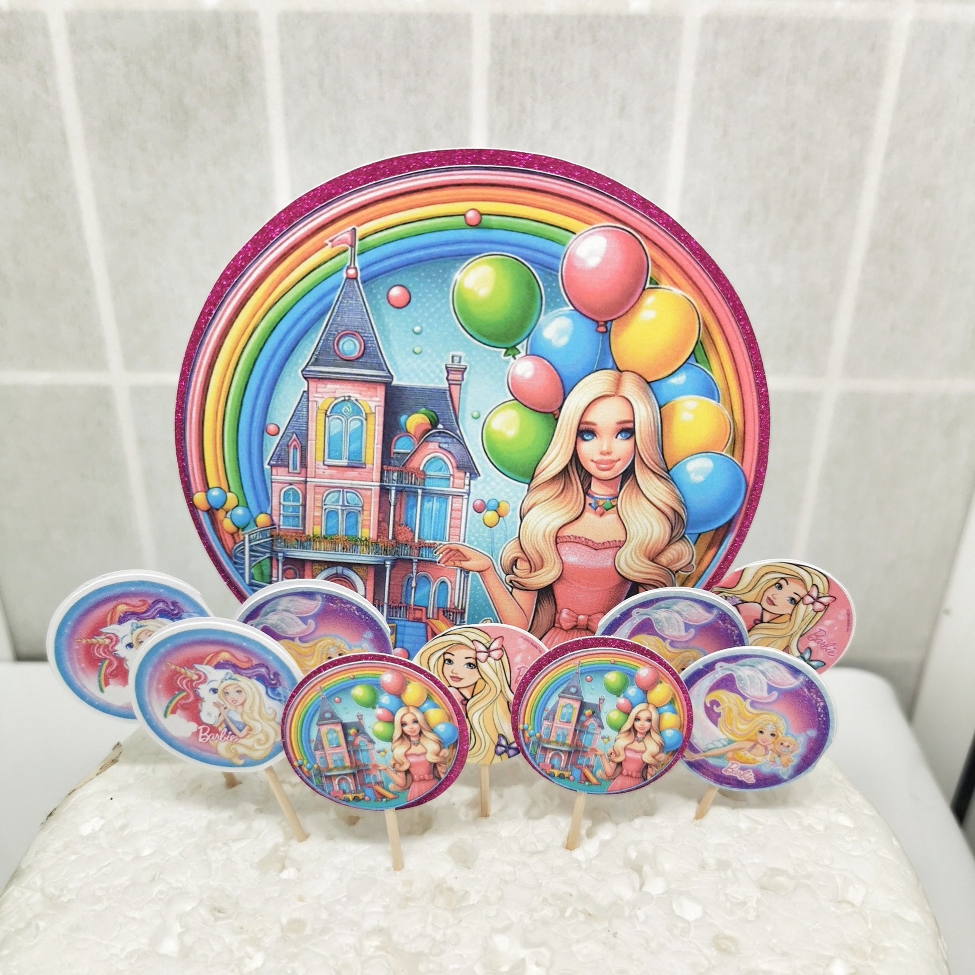 Dreamhouse Doll Cake Topper & 12x Cupcake Picks
